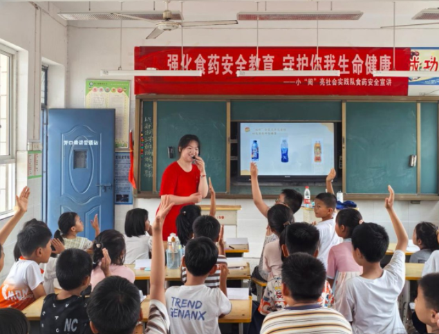 图为实践队员在陈村小学为乡村儿童讲解食品安全知识。