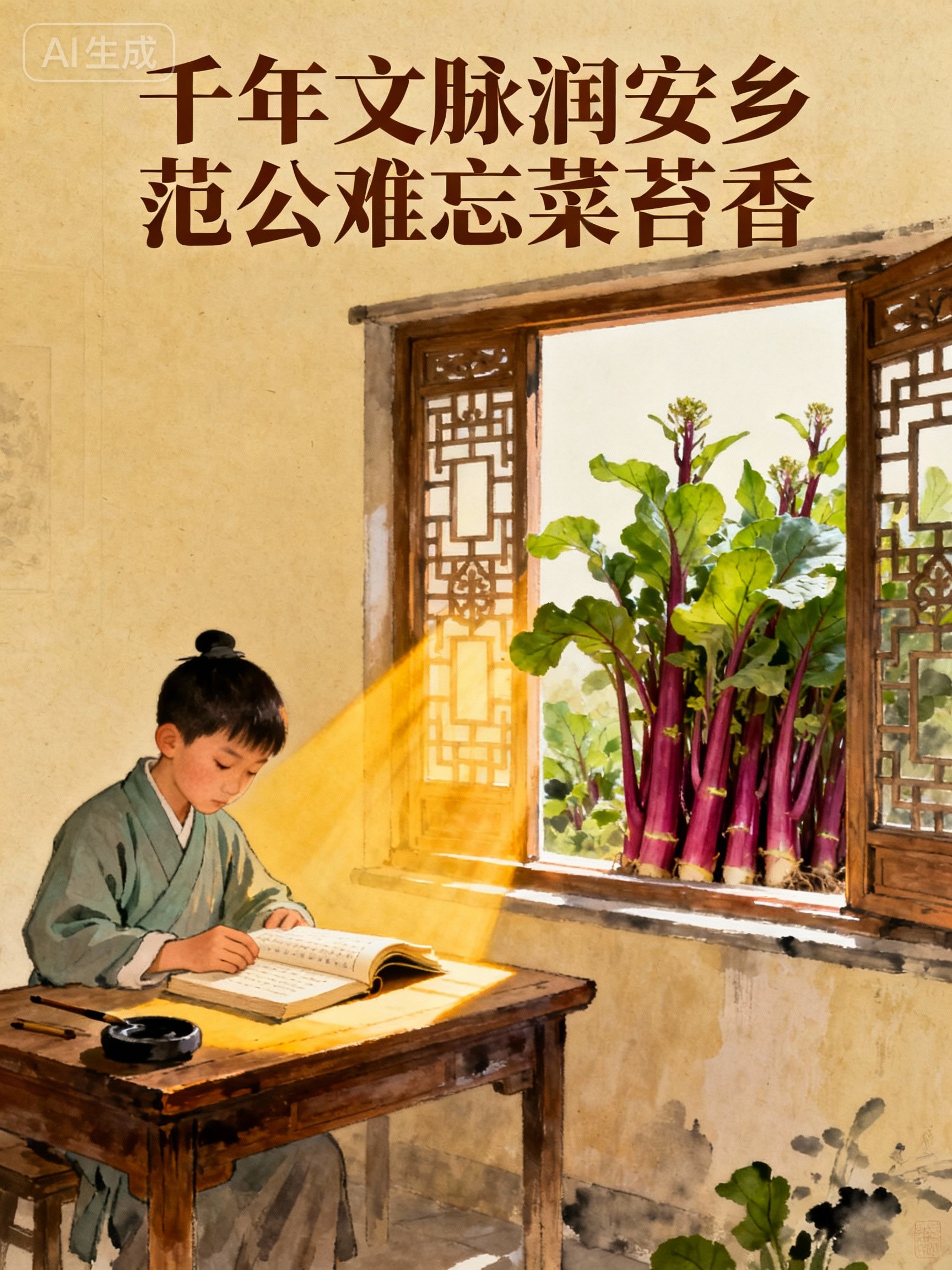 在洞庭湖畔的安乡,一片青紫色的菜薹地,竟与千载文脉悄然相连。幼年范仲淹在此苦读时,那清苦岁月里最亲切的滋味,便是这寻常却温暖的菜薹。经霜后的菜薹愈发清甜,母亲在灶火前翻炒的声响,混合着油香与书香,一同烙印在少年心中。这土地生长的坚韧与清甜,何尝不是“先忧后乐”精神最初的滋养?如今,当筷子夹起那脆嫩的茎秆,咀嚼的不只是千年未改的乡味,更是从历史深处生长出的风骨。每一口清甜,都仿佛与那位心怀天下的少年,共享着同一片土地的馈赠。安乡菜薹,已然从一方风味,长成了穿越时空的文化根脉。