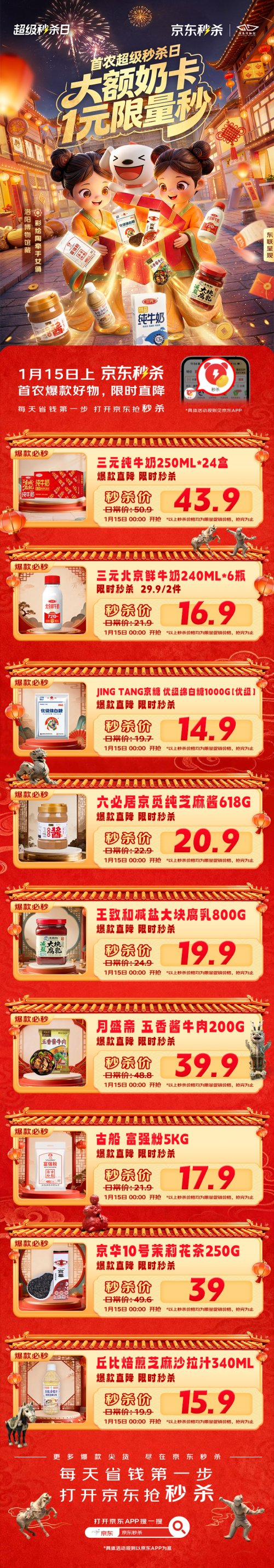 京东首农超级秒杀日1月15日开启,三元纯牛奶等首农爆款好物限时直降