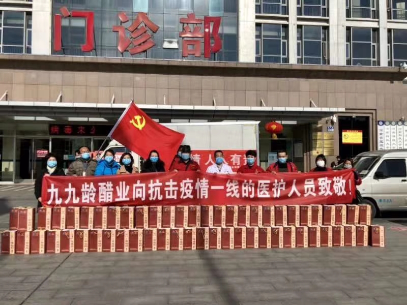 九九龄醋业党支部是河南省委组织部企业党建联系点,洛阳市传染病医院(新区三院感染科)党支部是市委组织部命名的先进党支部,九九龄党支部在洛阳小湯山医院交付使用之机,为抗疫一线的共产党员和医护人员送去醋保健食品口服液一百箱,让一线医护人员一日三餐用支保健醋,杀菌消毒开胃,提高免疫力,为抗疫做贡献。