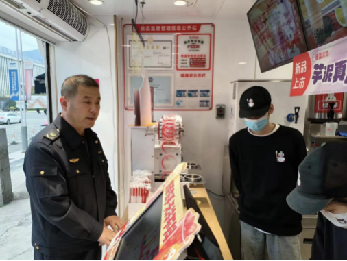 为进一步规范奶茶类饮品店经营销售行为,切实维护消费者权益,近日,浙江省温州市瓯海区市场监管局在辖区开展奶茶饮品食品安全检查,重点检查奶茶食品经营者证照是否齐全、是否存在无照经营和超范围经营,经营场所是否符合卫生要求,从业人员是否持有健康证,外卖餐饮单位是否已安装阳光厨房、是否正确使用外卖封签等。检查中,执法人员发现有3家商户分别存在健康证过期、操作间环境不整洁、后厨监控未开启等行为,均已责令改正。