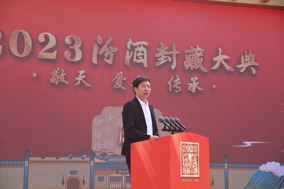 中国酒业协会秘书长何勇、中国酒类流通协会会长王新国、汾酒集团党委专职副书记副董事长李振寰分别为本届封藏大典致辞。