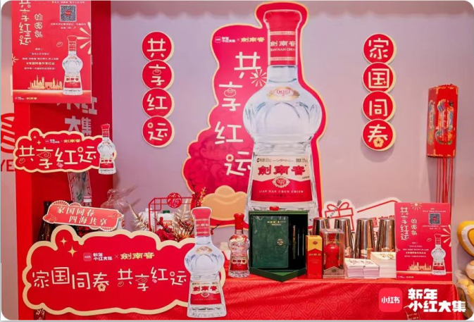 剑南春还携手搜狐新闻、网易新闻、凤凰财经,推出各类春节专题互动,邀请民俗专家讲解非遗习俗,打造精彩纷呈的线上活动,邀请全球网友共享团圆喜悦。为进一步传递新春红运,剑南春创新营销模式,借助小红书平台进行种草,打造线下“红运”集市——新年小红大集。同时,线上邀请达人参与话题互动,以剑南春的logo、瓶型、色调为灵感,创作各类新春“红运”作品,为春节带来满满仪式感。