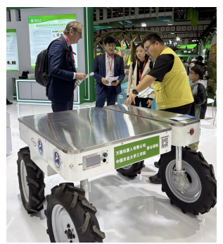 在中国农大展台,工作人员展示智能多功能作业平台机器人