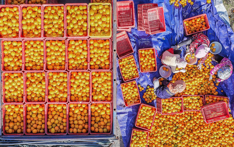近日,湖南省永州市道县种植的脐橙进入成熟期,当地果农抢抓农时采收、分拣、装运脐橙,供应市场。近年来,道县通过“党支部+基地+农户”模式,规模化、标准化、品牌化发展脐橙产业,极大促进了农民增收。