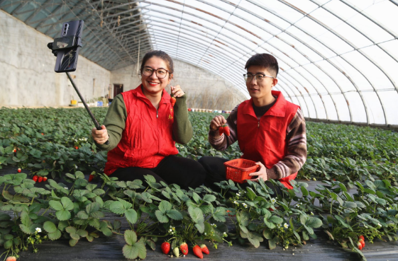 眼下,新疆维吾尔自治区阿克苏地区阿瓦提县各乡(镇)大棚草莓进入采摘期,由村干部、驻村工作队队员、“科技副职”及“新农人”组成的党员志愿服务队纷纷与种植户一起采摘、分拣、销售草莓,助力乡村振兴。