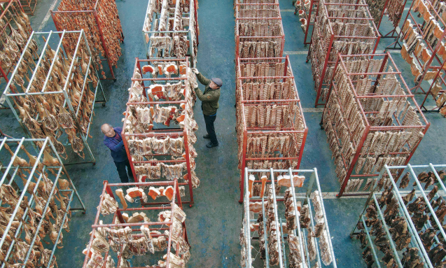近年来,安徽省安庆市岳西县依托独特生态禀赋,养殖黑猪、土鸡、生态鱼等特色畜禽水产,以传统工艺制成地道山乡腊味,通过“线上+线下”模式销往全国各地,串起养殖、加工、销售产业链。