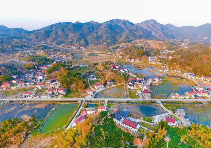 图为岳西县中关镇中关村茶园与稻田(无人机照片)。