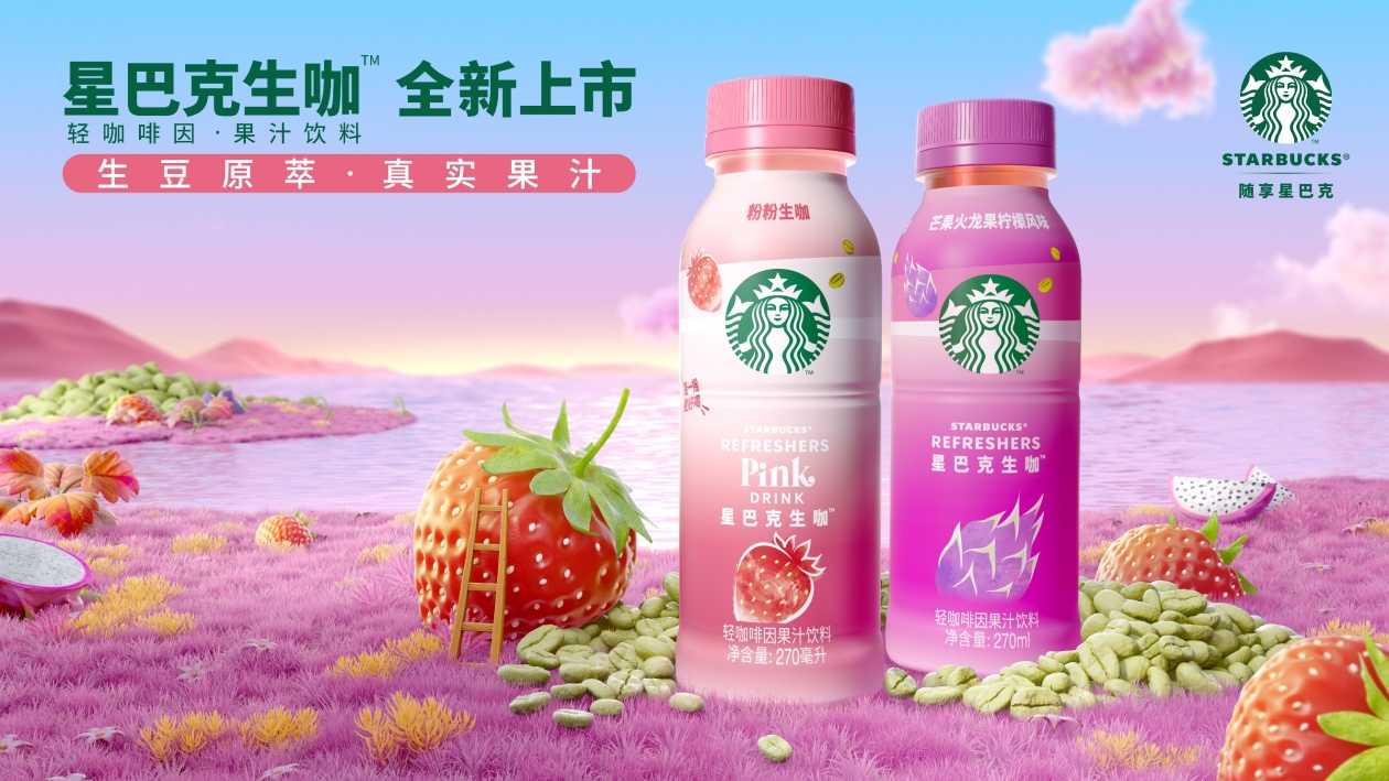 全新上市的即饮“星巴克生咖”包括三款口味——粉粉生咖Pink Drink,在酸甜草莓果汁基础上加入进口椰浆,呈现酸感与甜感于口中的微妙;紫紫生咖(芒果火龙果柠檬风味)巧妙融入了芒果汁与柠檬汁,口感清爽酸甜;还有草莓阿萨伊柠檬,草莓汁叠加柠檬汁,双重果汁融合,令人回味无穷。