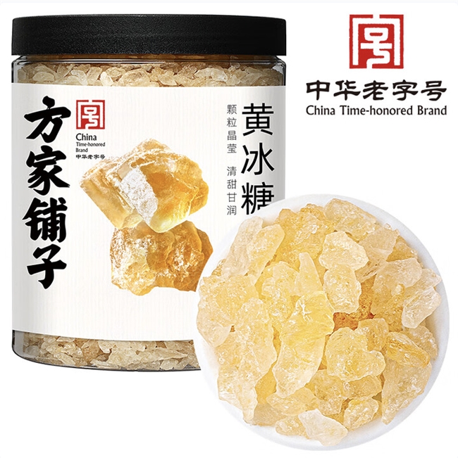 能撑起非遗菜肴的风味,源于方家铺子对黄冰糖品质的极致坚守。这款黄冰糖坚持以甘蔗原汁为原料,沿用古法熬制工艺:先将甘蔗原汁精心提纯、去除杂质,熬制完成后静置数天自然结晶,再经手工敲碎成颗粒晶莹、小巧易溶的形态。从一滴滴甘蔗汁到一颗颗黄冰糖,清甜精华被完整保留,高温下也能稳定释放风味、避免焦苦,恰如其分地衬托食材本味,这也是它能与宿迁名菜“同锅共灶” 的缘分所在。