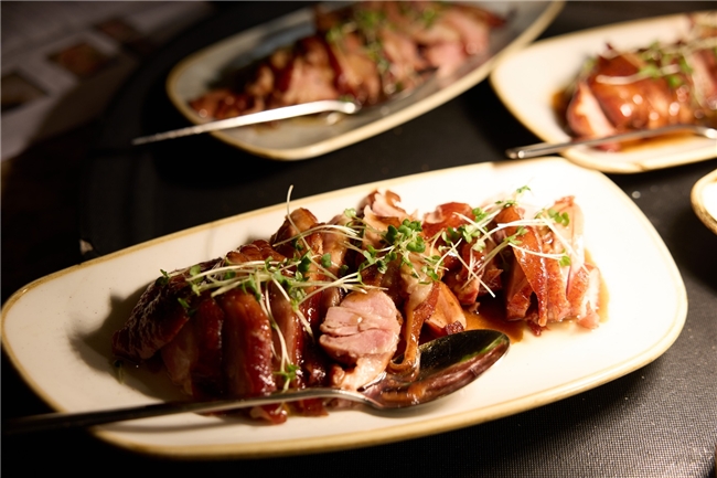 在品鉴过程中,山水餐厅厨师团队精心准备的菜品与飞天茅台的香气实现了巧妙融合。嘉宾们一边品尝菜肴,一边感受酒体在口腔中的多维变化。从初口的细腻酱香,到中段粮香、坚果香的交织,再到末段干净利落的回甘,每一层次都带来不同体验。许多嘉宾在交流中谈到茅台酒“越品越醇、越细越长”的特点,不少外国来宾尤其对其独特的香气结构和细腻口感表示惊喜,称其为“极具东方文化韵味的味觉体验”。在深度体验的基础上,嘉宾们对产品的兴趣显著增强,不少在现场即刻表示出采购意欲。