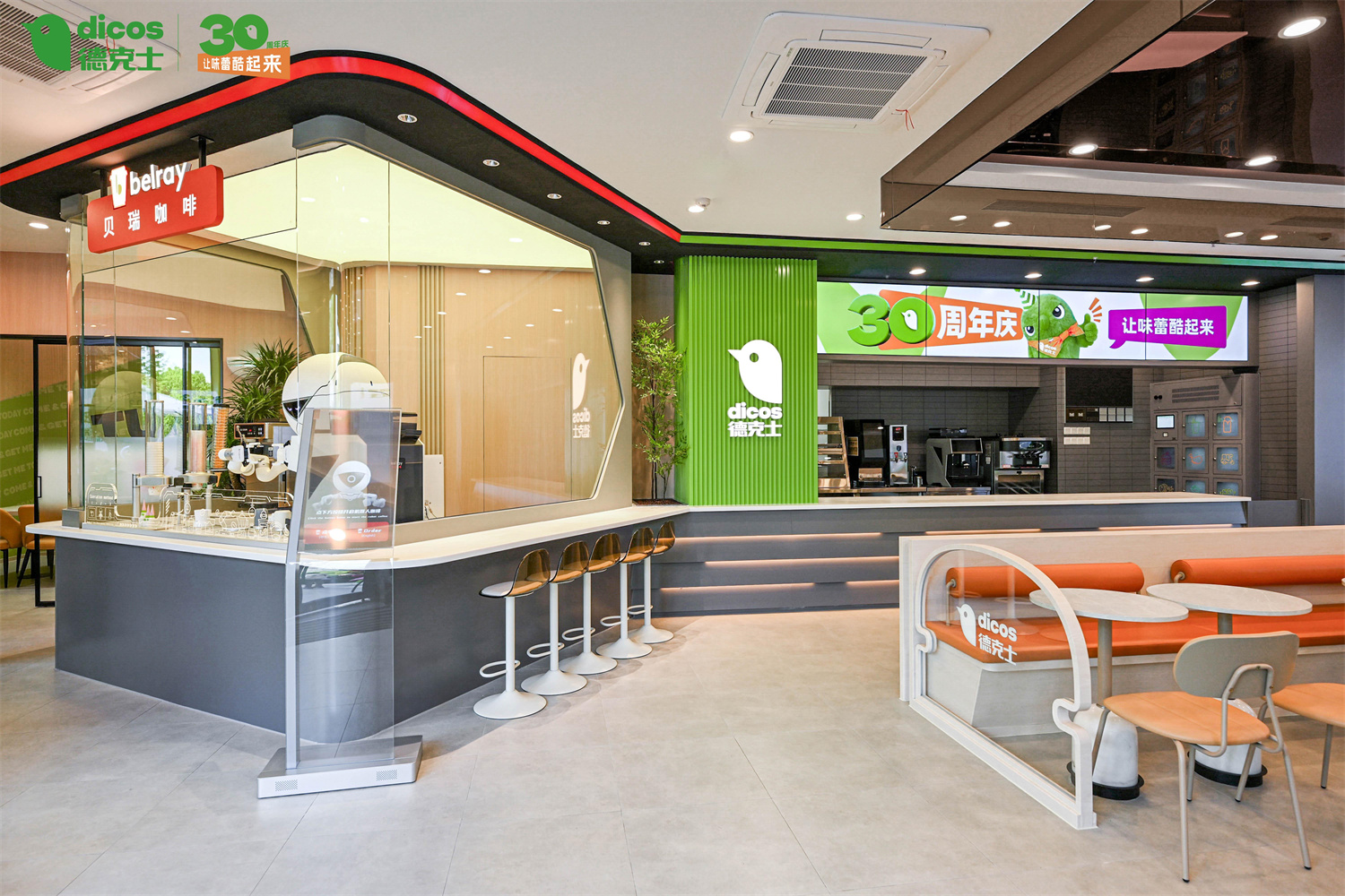 焕新升级后的新一代德克士门店,以场景化、舒适化、现代化为设计核心,全方位重构用餐体验。门店优化空间动线与环境氛围,打造通透开阔、自在舒适的整体格局;特设亲子友好专区,配备适配儿童的专属场地与暖心设施,贴心满足家庭用餐需求,让亲子陪伴更有温度。同时兼顾一人食、朋友小聚等多元社交场景,辅以简约高级、辨识度鲜明的视觉与包装体系,从空间环境到细节体验,均贴合当代消费者审美与社交诉求。既打破传统快餐的局促感,又让德克士在日常用餐场景中,始终兼具潮流质感与亲和温度。