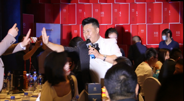著名歌手、主持人龙小刚晚宴上与观众互动、品酒