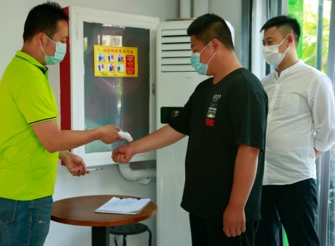 在店门口显眼处贴着温馨提示:“进店请佩戴口罩,请保持安全距离”,看来商家的防控意识还是挺强的。记者环顾四周,发现这家店整体装修格调确实让人眼前一亮,主打绿色的装修风格,天然的清新田园风格扑面而来,摆放着紫色的茄子、红色的番茄、黄色的柠檬….各个都新鲜欲滴,看着就好有食欲,煞是诱人,心情瞬间开阔。