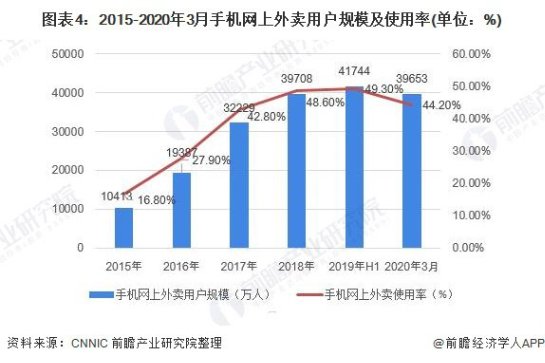 根据Trustdata数据显示:2019年中国外卖行业市场交易额达6035亿元。随着资本补贴红利减弱,市场竞争加剧,外卖行业逐渐由高速转向中速增长阶段。
