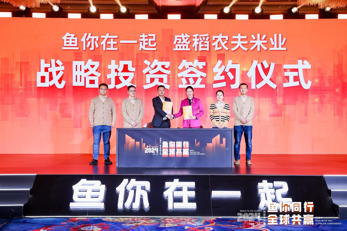 会议当天,鱼你在一起与五常市盛稻农夫米业有限公司现场签订了全面战略合作协议,双方将携手共建大米工厂,筑牢鱼你在一起大米供应链。通过与上游大米供应商深化合作,鱼你在一起将实现从稻田到餐桌的全链条保障。