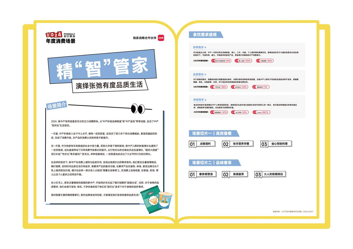 如在小红书上,新中产人群相关的搜索关键词“山姆快手早餐”增涨237%、独居人群相关的“速食推荐”增长135%、银发族相关的“送长辈的实用礼物”增长177%,这些搜索增长趋势都反应了不同人群场景上升的需求。