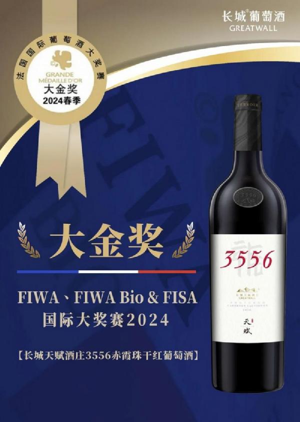 长城葡萄酒始终坚持“品质至上”理念,以国酒的品质与担当向世界传递出源自中国的独特韵味。仅在2024年上半年,长城天赋3556就在2024春季FIWA、FIWA Bio & FISA大奖赛、2024法国Vinalies国际葡萄酒烈酒品评赛、2024德国国际葡萄酒大赛等多项国际大赛中连续摘金,同时还荣获了“中国最佳红葡萄酒”称号,闪耀国际舞台。