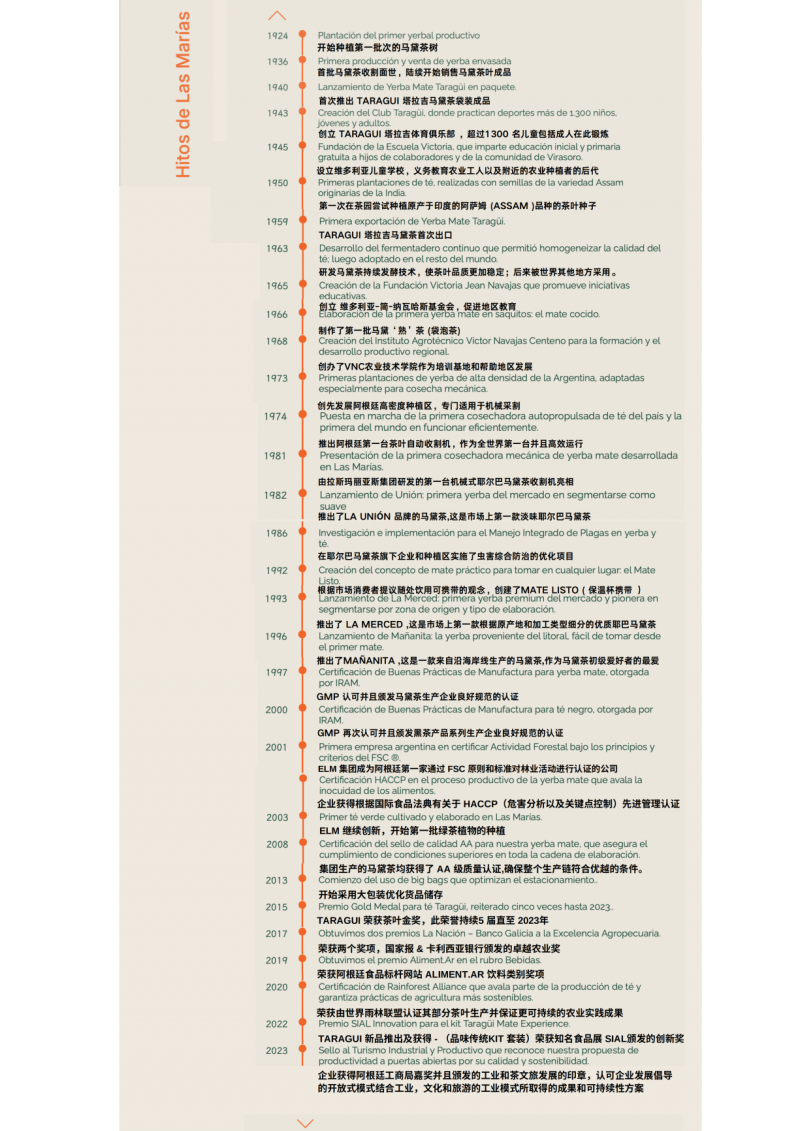 作为世界上最大规模的阿根廷马黛茶生产商EL ESTABLECIMIENTO LAS MARIAS (以下简称拉斯玛利亚斯ELM 集团) ,昨日举行了盛大的百年欢庆,这家行业内的标杆企业承载着过去的百年历史:拥有 4000 多公顷耶巴马黛茶种植园、引领世界级别的耶巴马黛茶市场的风向标,如今在企业的第四代的继承人的带领下,马黛茶继续在新的时代中传承历史并且带着使命走向未来。