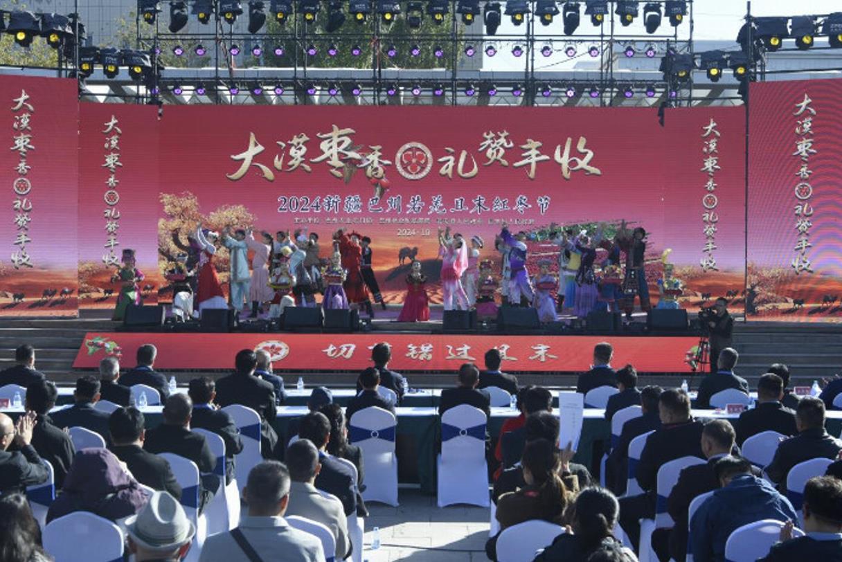 近日,新疆维吾尔自治区巴音郭楞蒙古自治州若羌县与且末县共同迎来了红枣的丰收庆典。在32.73万亩广袤的土地上,红枣挂满枝头,预示着又一个丰收年的到来。为庆祝这一盛事,当地隆重举办了2024新疆巴州若羌且末红枣节。