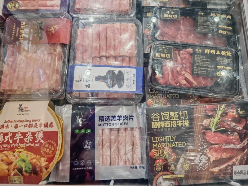 1.牛羊肉卷类:严选优质原料,保留肉质鲜嫩口感。生产过程中将牛羊肉切成厚度均匀、薄厚适中的肉片,每一片肉卷厚度精准控制在1.5-2毫米之间,既能保证在涮煮时快速熟透,又能充分保留肉的鲜嫩口感与丰富汁水。