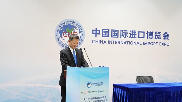 中国食品土畜进出口商会会长曹德荣在致辞中表示,进博会作为国家推动高水平对外开放的重要平台,已成为全球优质产品进入中国市场的快速通道和首发阵地。曹德荣特别提到,《直播电商之夜》“云购新‘食’界”专场借助“内容+电商”模式,依托国家级媒体资源,打破时空限制,将全球优质食品直接送达消费者;同时,“云食慧”国际食品贸易AI大模型以科技赋能,提升贸易效率,打通内外贸流通环节,促进供需精准匹配,为构建双循环新发展格局注入新动能。