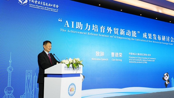 曹德荣会长在致辞中指出,AI技术与外贸的深度融合是落实“加快发展新质生产力”战略要求、服务构建“双循环”新发展格局的关键举措。面对当前国际规则碎片化、供应链效率不高等行业痛点,他表示:“在商会指导下,云食界联合相关机构研发的‘云食慧’大模型已升级至2.0版本,旨在通过全链路数字化服务赋能产业链各环节,助力行业实现‘合规降本、供应链提效、交易增能’三大突破。”