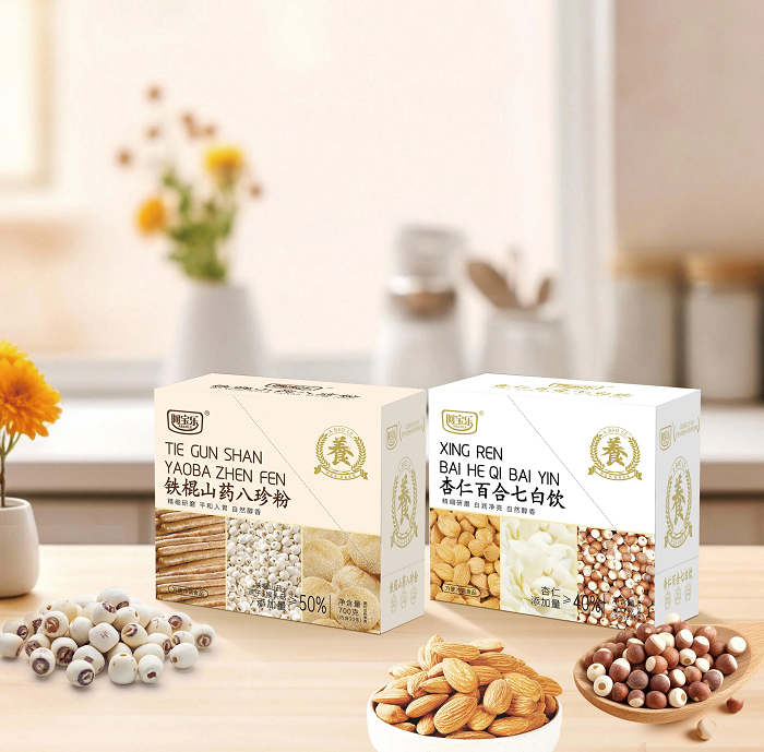 在阿宝乐的产品矩阵中,杏仁百合七白饮作为针对特定需求场景开发的代表性产品,选用杏仁、糙米、莲子、怀山药、葛根、芡实、百合等进行复配,杏仁主打润肺清火、止咳平喘;百合侧重安心安身、润燥止咳;怀山药则有滋阴润生、生津润肠的功效。多种食材的组合,既延续了传统食养的搭配思路,又覆盖了润养舒缓类的消费需求。