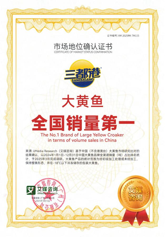 作为“大黄鱼全国销量第一”品牌,三都港构建了从苗种、生态养殖到加工销售的全产业链条,实施“一鱼一码”溯源系统,确保产品品质稳定可靠。其大黄鱼产品连续8年蝉联京东全网鱼类销量冠军,连续6年稳居天猫同类目第一。