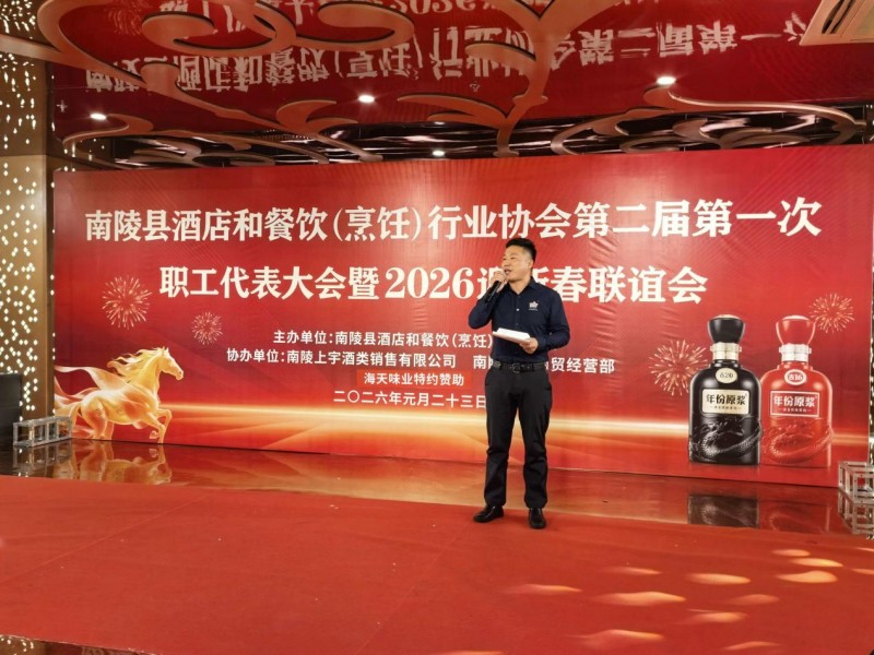 金蛇辞旧启新章,骏马迎春共奋进。近日,南陵县酒店和餐饮(烹饪)行业协会第二届第一次职工代表大会暨2026迎新春联谊会圆满举办,南陵县人民政府主管商贸副县长张阳阳、县酒店和餐饮(烹饪)行业协会会长夏银祥、协会主管调味副会长梁静等领导嘉宾出席活动。