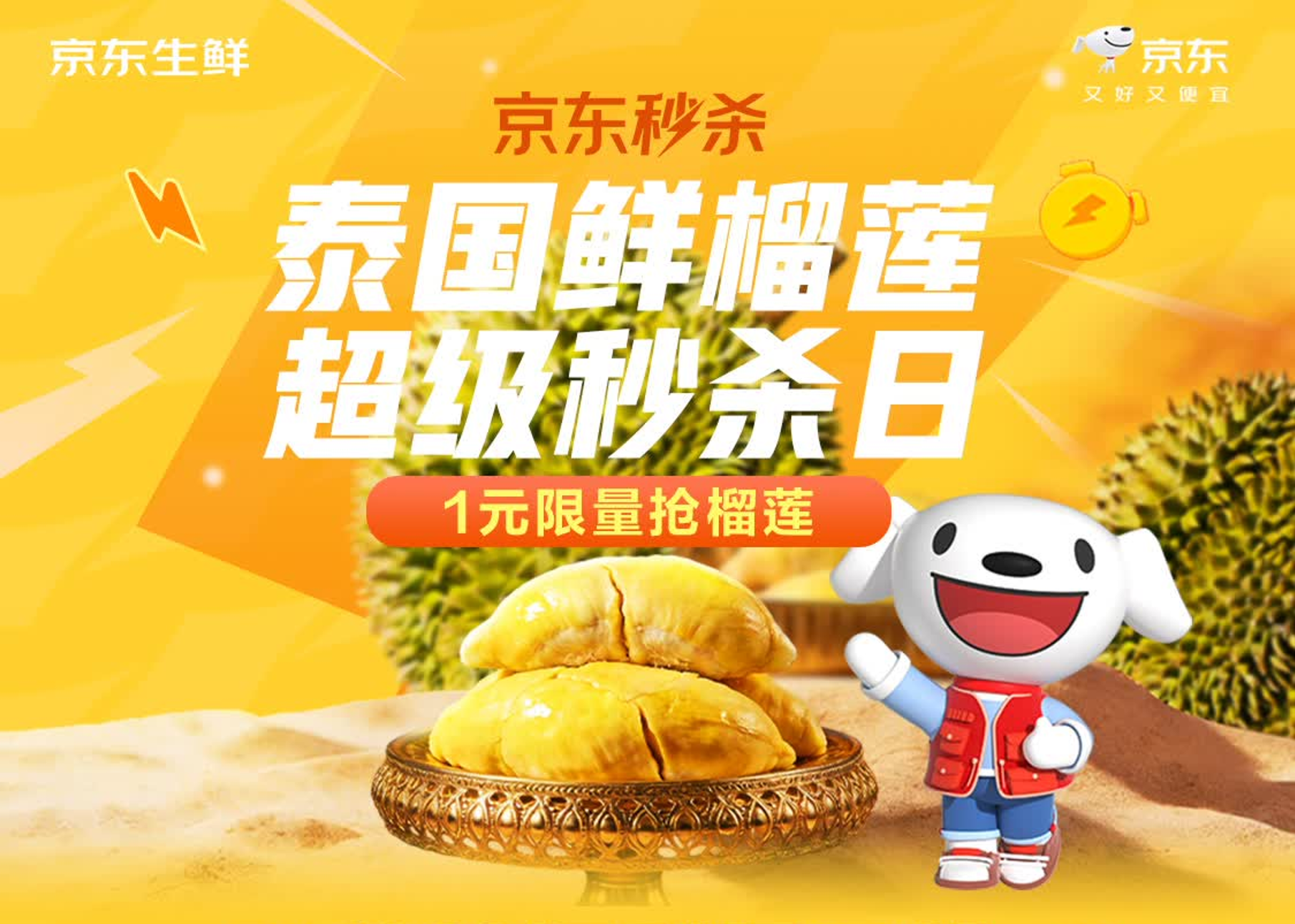 泰国鲜榴莲1元秒杀!京东秒杀泰国鲜榴莲超级秒杀日4月23日火热来袭