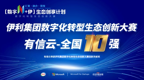 6月23日,由伊利集团携手微软加速器联合发起的“数字化转型生态创新大赛”决赛完满落幕,有信云凭借在“全渠道数字化运营”赛道的创新技术、卓越表现,跻身全国10强并荣获生态创新贡献奖。
