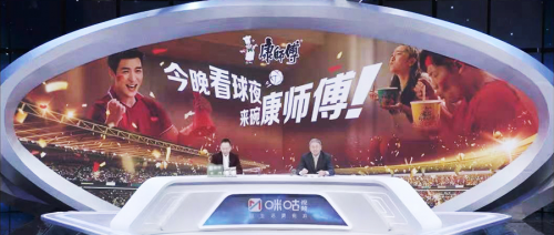 而且康师傅对于咪咕赛事直播资源的全覆盖也可见其聪明之处,据了解:在有限的预算下,康师傅传播内容所覆盖的40 场赛事,占比总场次达到63%;将所有关注的6点、9点、11点场次以及全部 1/8决赛、1/4决赛、半决赛和决赛全部覆盖;传播物料深入渗透观众所能看的各个媒介位置,比如说直播演播室的LED背景,在直播画面中打出“今晚看球夜,来碗康师傅”的标语,进一步渗透新场景,包括主持人的口播、中插广告和飞滚字幕等形式的植入,让“看球夜,吃康师傅面”贯穿全程。