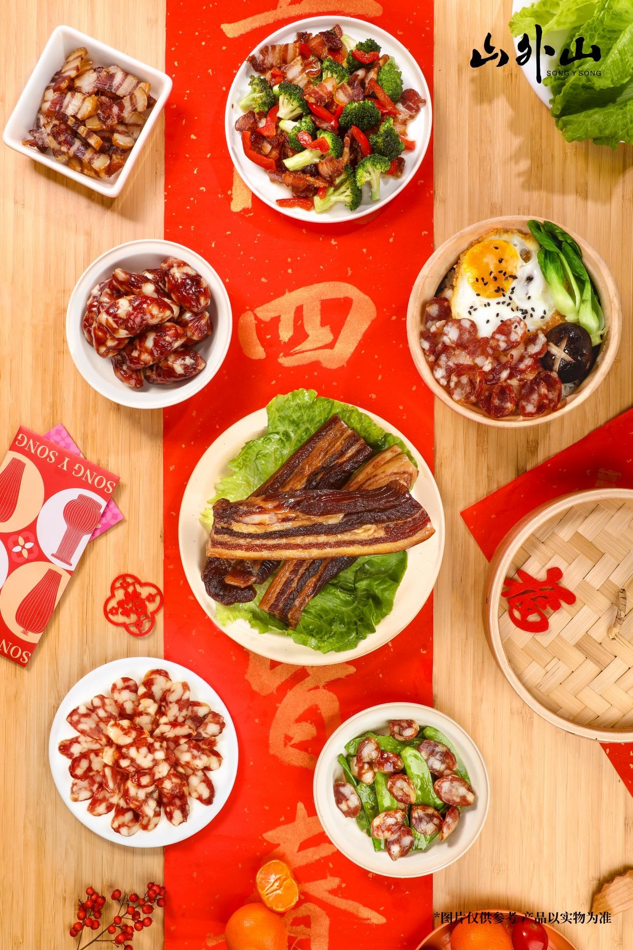 山外山迎春腊福腊味礼盒也获得了美食界、茶界、投资界等10位大咖推荐,分享多款腊味经典做法。吉庆团圆腊味菜谱中每道菜都飘着浓浓的香味,也带来了浓浓的年味和家味。
